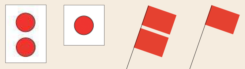 A1: In-, uit-, of doorvaren verboden (algemeen teken). Het gebruik van twee boven elkaar geplaatste borden, lichten of vlaggen duidt een verbod voor langere duur aan. Een brug met dubbel rood licht wordt op dat moment niet bediend, enkel rood betekent dat de doorvaart op dat moment verboden is